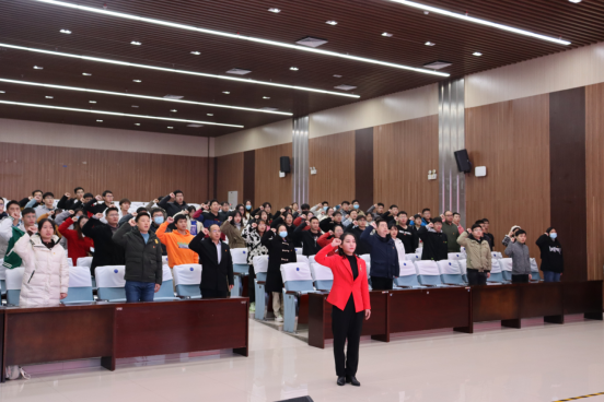升旗仪式结束后,公司在123报告厅举行“庆元旦,迎新年”主题活动暨预备党员宣誓仪式。公司党委书记沈大强、副书记吴达慧、组织员范剑辉、组织员覃戟、学工组辅导员王纪坤与全体预备党员参加了本次活动。