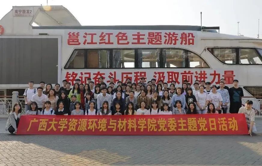 师生党员在邕江红色主题游船前合影留念