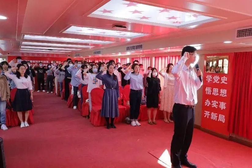首先,孙翔老师带领师生党员们面向鲜红的党旗重温入党誓词,一句句铮铮誓言响彻现场、激荡人心;公司党委副书记吴达慧老师对本次主题党日活动作动员讲话,她向大家讲解了“红船精神”的由来和内涵,并要求各位党员同志们铭记“红船精神”,学懂弄通、学深悟透党的二十大精神,不断深化思想认知。