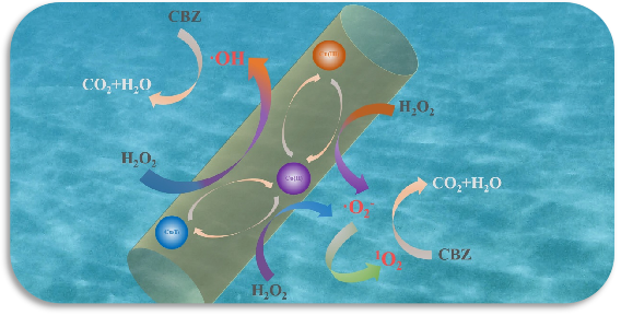 卡马西平作为一种新兴的有机污染物,因其具有结构对称的含氮芳香杂环,导致在水环境中很难被降解。本团队利用缺陷工程将单原子铜锚定在管状氮化碳上,来促进类芬顿反应高效降解卡马西平。研究表明,具有碳缺陷的Cu/V550-TCN复合材料在较宽的pH范围内,对卡马西平表现出优异的催化性能。同时,结合实验研究和密度泛函理论计算共同揭示了碳缺陷调控活性位点以及Cu(I)/Cu(II)/Cu(III)氧化还原循环对活化H2O2产生单线态氧高效降解卡马西平的机理。本研究为表面缺陷调控活性位点促进类芬顿反应高效降解水环境中新污染物提供了新的思路。