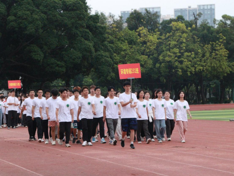 开幕式现场,各班级方阵统一着装,迈着整齐的步伐,依次走过主席台,一一展现集体风采。同学们脸上洋溢着青春活力、自信大方的笑容,嘹亮的口号声响彻体育场上空。田径场内,各班井然有序地列队,齐唱中华人民共和国国歌。