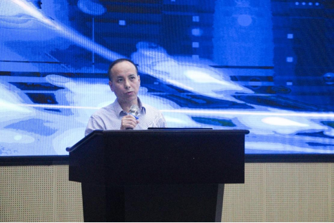 公司党委副书记吴达慧介绍科技文化节活动项目