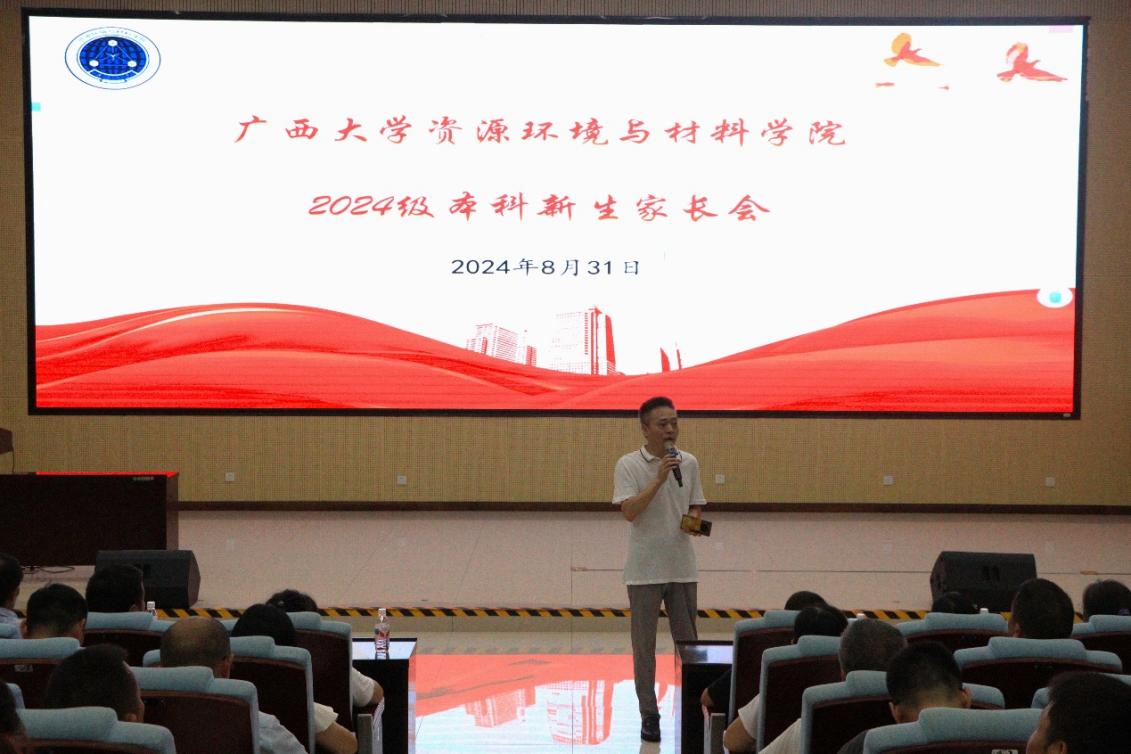 8月31日下午,公司2024级本科新生家长会在公司123报告厅召开。教师代表喻泽斌教授、学工组老师及新生家长参加本次会议。会议由公司党委副书记、纪委书记吴达慧主持、主讲。