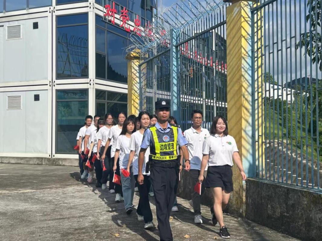 实践团一行踏入水口边境派出所,踏上了一段意义非凡的边境探访之旅。现场,一部关于守护边境的专题宣传片吸引了所有人的目光。画面中,戍边民警们英勇无畏的身影,他们诉说着保卫祖国边疆、守护百姓安宁的感人故事,每一个细节都让人动容。这些平凡而伟大的守护者,用他们的青春与热血,筑起了一道坚不可摧的国门防线。