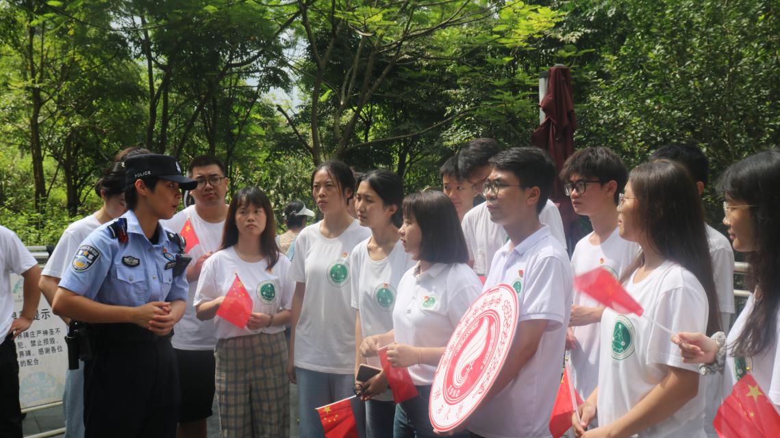 团队成员围成环,仔细聆听边境派出所民警讲述界碑的来历,她们鼓励大家要永葆爱国情怀,尽自己所能为祖国边防贡献青春之力。挨着界碑,举着实践团团旗,共青团员代表讲述836号界碑的故事,以别样的形式上好“行走在边境线上的思政课”,鼓励大家学习并传承戍边英雄在捍卫祖国领土时“敢于斗争、敢于胜利”的精神,号召同学要善于在危机中育新机、于变局中开新局,敢于斗争、敢于创新,在实现中国特色社会主义现代化,实现中华民族伟大复兴的进程中不断开拓向前!