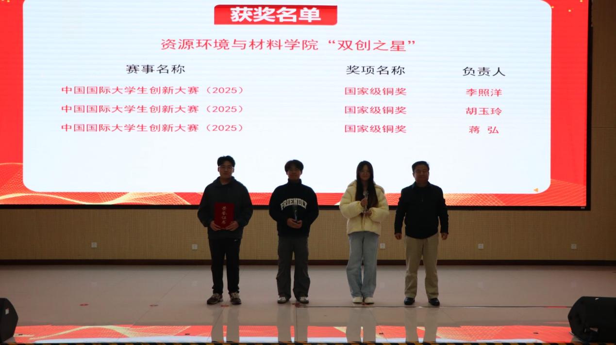 现场,领导嘉宾为国创赛、“挑战杯”等赛事获奖团队及个人颁奖,并邀请2025年国创赛国铜项目《一代楷膜——新一代显示屏半导体薄膜领军者》团队进行路演展示。