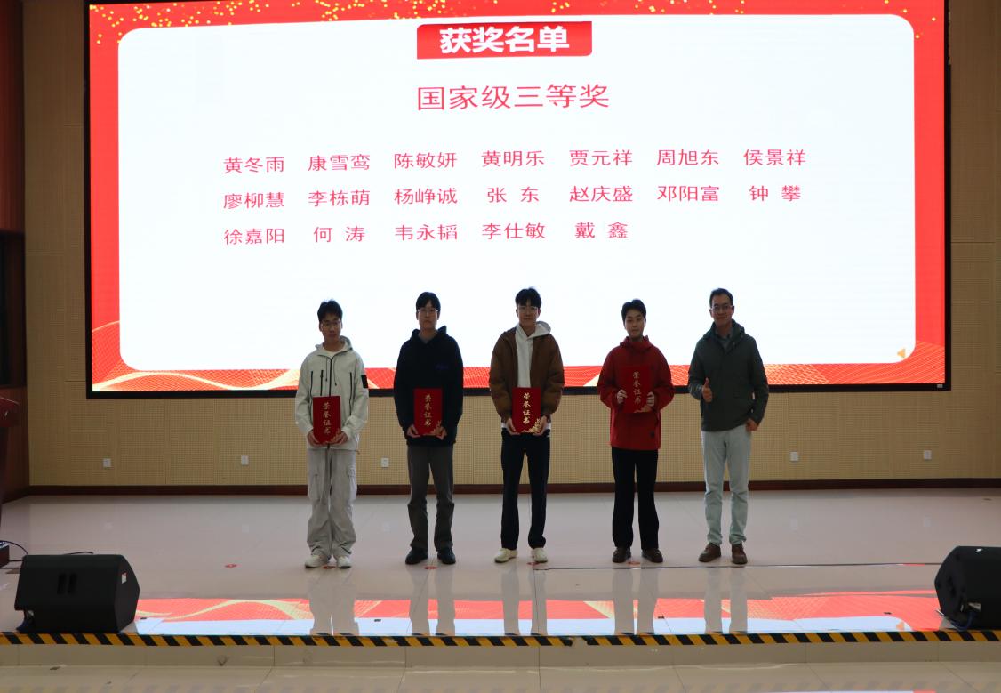 梁宇彬老师为第十二届“挑战杯”广西老员工课外学术作品竞赛获奖员工颁奖