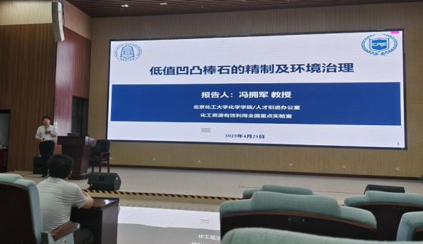 4月21日上午,北京化工大学冯拥军教授莅临公司进行学术交流,并作题为《低值凹凸棒石的精制及环境治理》的学术报告,报告由潘家鸿教授主持,吸引了公司众多师生到场聆听与交流。