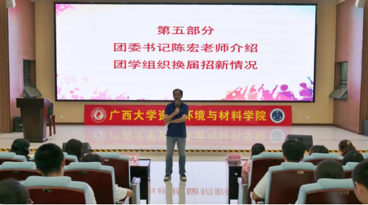 公司团委书记陈宏老师介绍公司团学组织换届招新情况,希望各位“萌新”们在新的工作部门和岗位上能够牢固树立服务师生的意识,把握机遇施展才华,为公司团学组织的建设贡献青春力量。