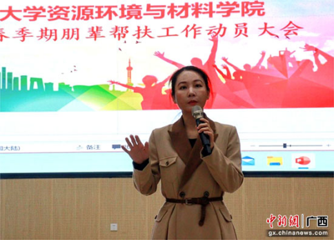 她打造《形象与礼仪》美育课,提供“订单式”就业面试形象设计与礼仪指导,从满足员工需求“小切口”入手讲好思政“大道理”,课程成为全校最受欢迎校选课之一,获广西高校本科教学改革重点项目立项,有效促进教育与就业深度融合。在她的指导下,每年员工初次毕业去向落实率均达90%,用人单位满意度100%;在她的鼓励下,100多名选调生奔赴基层建功立业,50余名员工参军入伍青春报国。