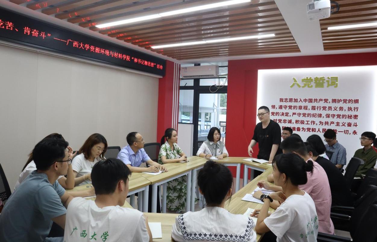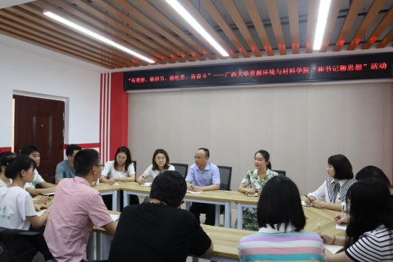 我院结合学习贯彻习近平新时代中国特色社会主义思想主题教育总体安排,5月26日下午在东校园东27栋员工宿舍党员活动室举办“有理想、敢担当、能吃苦、肯奋斗”——“和书记聊思想”活动,公司党委沈大强书记、党委吴达慧副书记及专职辅导员与公司20余位员工党员代表座谈交流,面对面了解同学们思想、学习、生活等各方面情况,听取大家对公司相关工作的意见和建议。